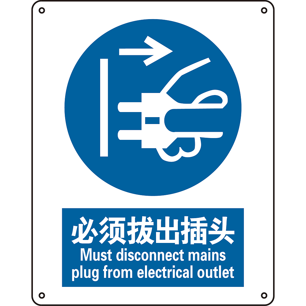 [RSSG0301] Raxwell GB安全标识必须拔出插头,250*315mm,1.5mm厚ABS板