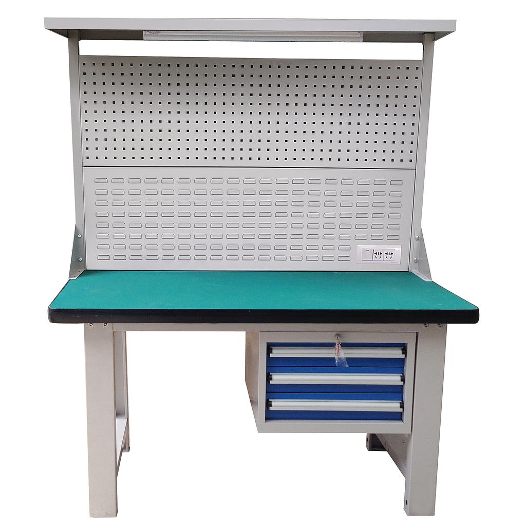 [RHTD0026] Raxwell 重型工作台,带挂板组,尺寸(长*宽*高mm):1500*750*1800(台面厚50mm)三吊抽