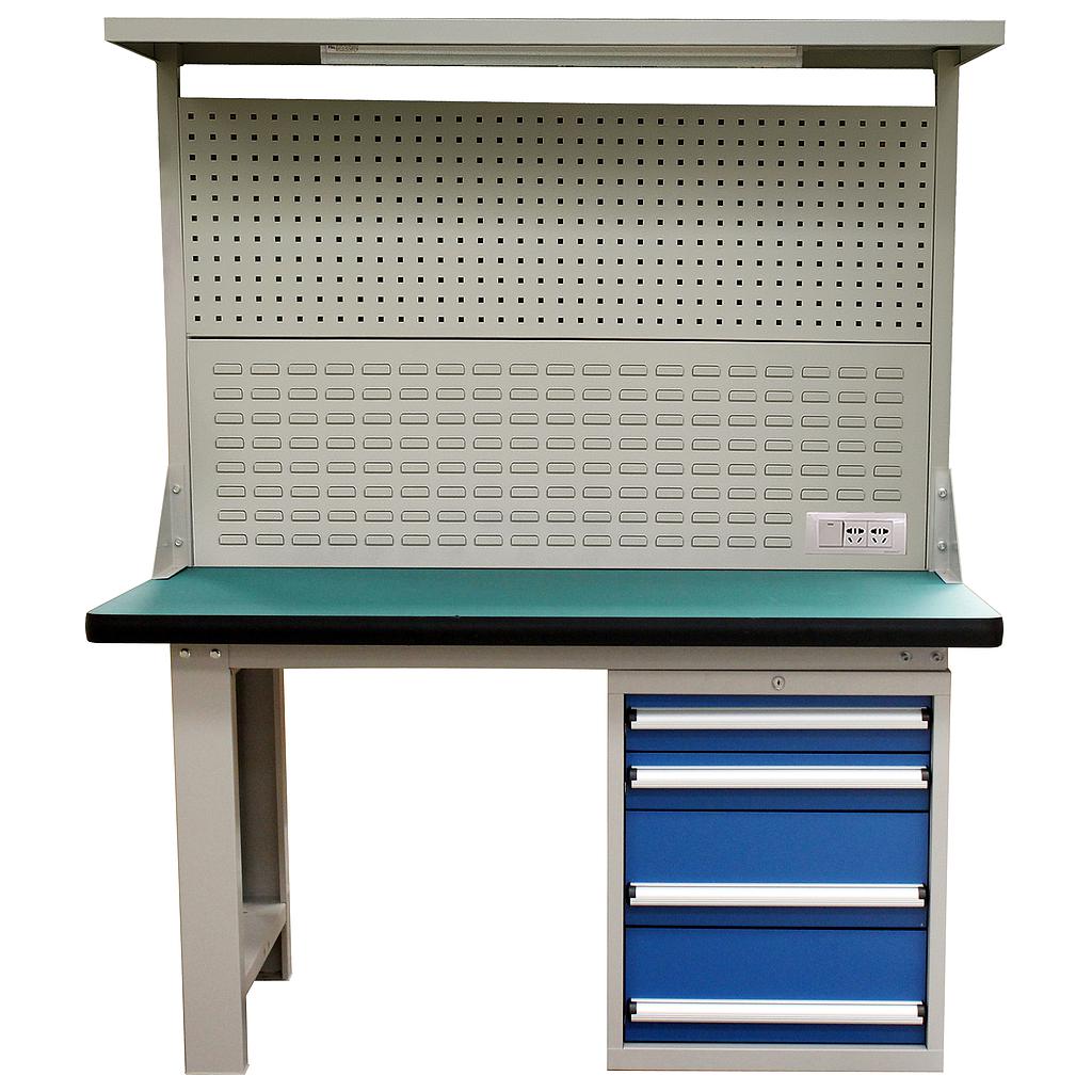 [RHTD0029] Raxwell 重型工作台,带挂板组,尺寸(长*宽*高mm):1500*750*1800(台面厚50mm)四抽边柜